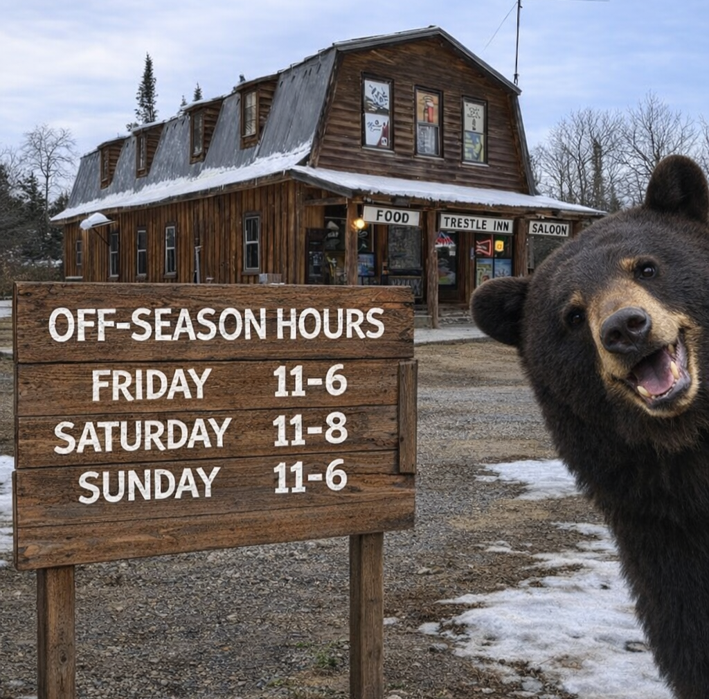 The Trestle Inn gets its name from the fact that it was built out of an old railroad trestle bridge located 4 miles from where the Trestle sits now. Our Story
