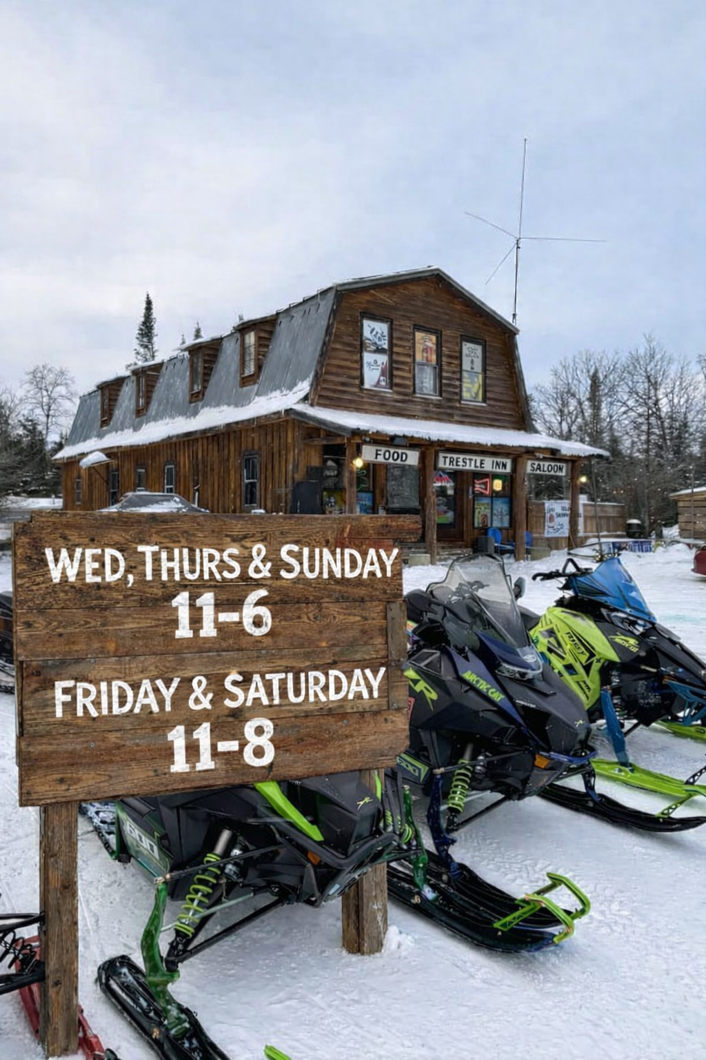 We have just about everything you could want from a full service bar. Stop in, rest and warm up, take the tour, order some great food, have a drink and socialize with the locals. Always a good story to be had and great memories to leave with.