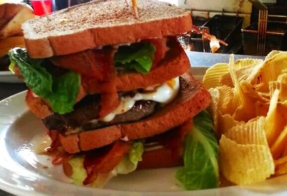 Our chef created this {shown} one time only masterpiece replacing the usual bun with 2 BLT’s.